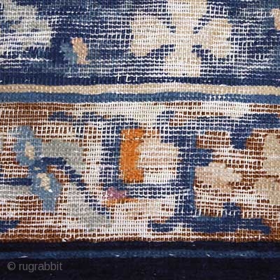a great design with obvious condition issues including corrosion, staining, fold wear, etc. Floppy handle, low pile over most except portions of border are reasonable thick. a couple aniline repairs as indicated in images. Sides bound. Priced accordingly!