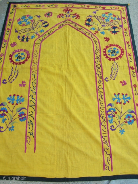 Prayer mirab cotton wall hanging with silk embroidery, Uzbeck.