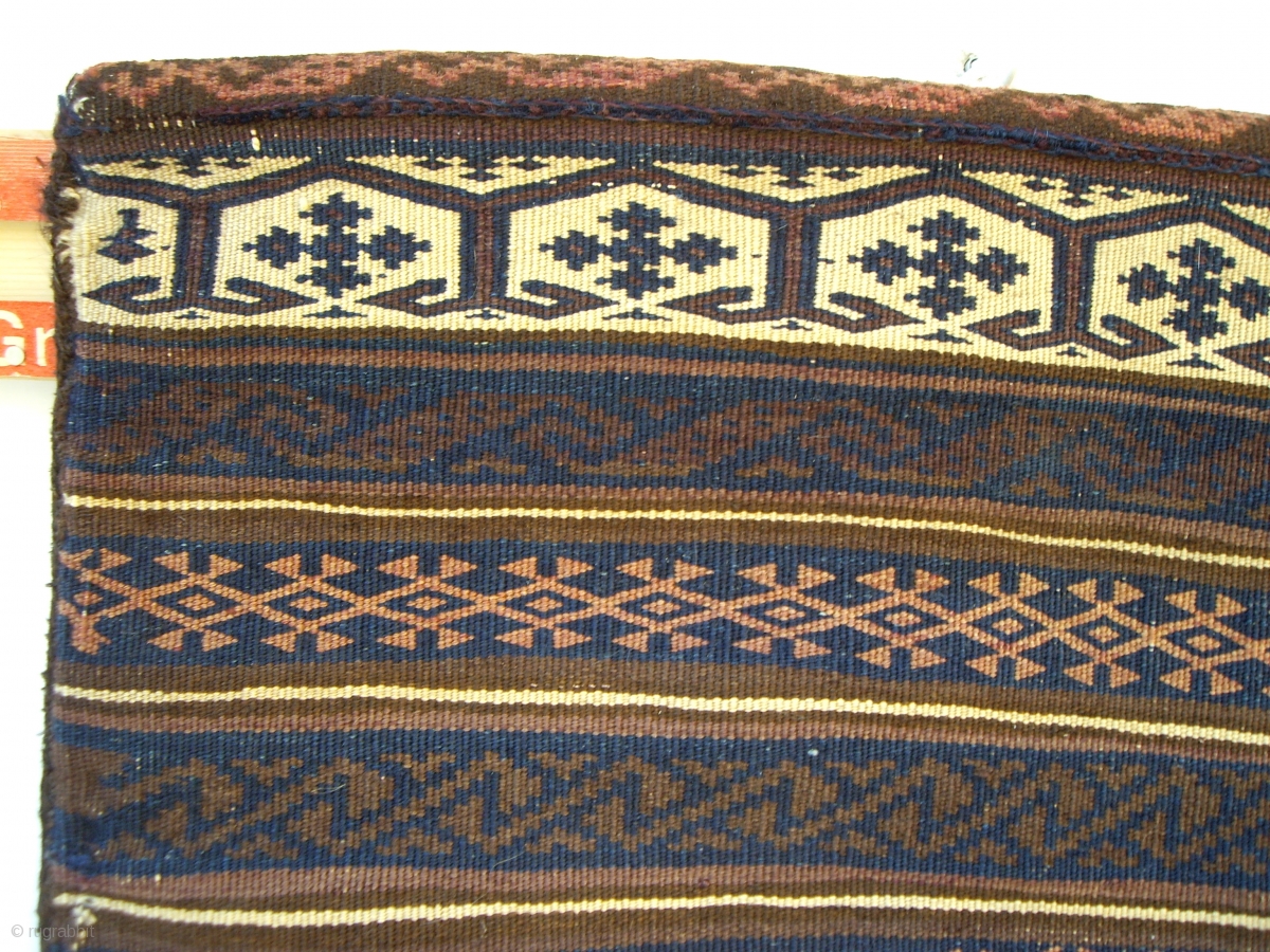rare antique belouch saddlebags. a collectors item. These finely woven bags are ebroidered on the reverse with rows of goats and peacocks. The bags are in excellent condition and complete with the original goat hair fastening loops. They are probably from a beloulch group near Herat in north west Afghanistan, athough i bought them in the bazaar in Quetta. Ref. 290 Size 105x42 cms Price €850.-
