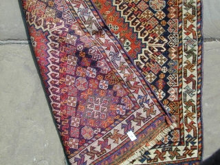 nicely drawn bag missing outer guard both sides and bit toothy. Never been cleaned would brighten up. All natural dyes cochineal silk wefts