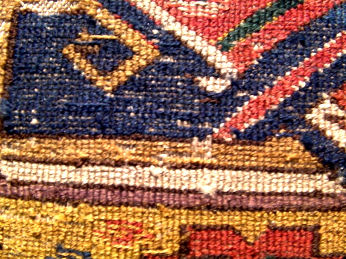 a rare early Eagle Kazak Sumak rug. Worn. 10 ft x 6.6 ft.