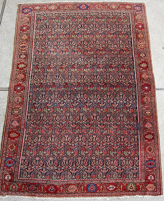 Real fine weave Feraghan, 19th century. 4’ 2” x 6’7” Full pile; no wear. Frosty velvet pile with no wear.