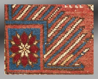 A cute little rug from the Shirvan area. The small size and different arrangements of ornaments suggests this may have been woven for personal use in the home rather than the product of a workshop environment.