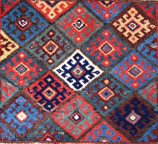 Super Jaff Kurd bagface. Best colors in one of these I've seen in a long time. Super saturated colors with a great yellow. Nice skirt. Mostly full pile. a little ragged around the edges as visible in the main photo.