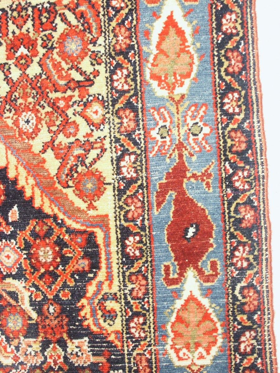 with a very rare turkis bleu Senneh border, komplet and worn in two