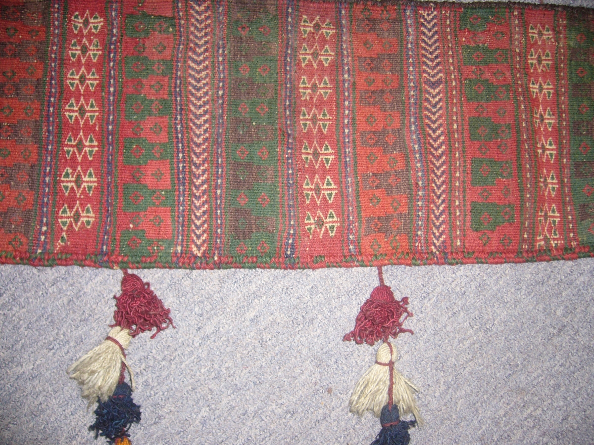 Long Supereb Sistan Baluch Tent Band or trapping,with original beads and ornament,very fine weave,nice colours,salt bag desigen.