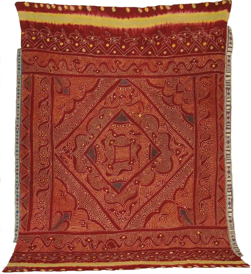 Tie and Dye Odhani From Shekhawati Rajasthan.India.Its Very rare Single Bandh Tie and Dye.all vegetable colours has been used.Its size is 150cm x 200cm.