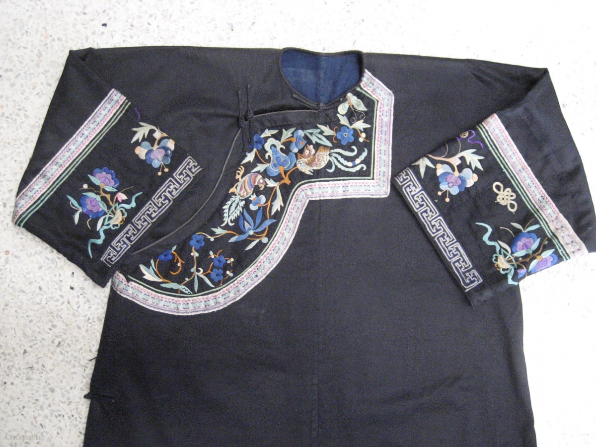 'Tu-jia' Minority, Songtau county. Guizhou province, South China, Womans tunic. Silk embroidery on satin base with cotton indigo lining Est.early 20th century.