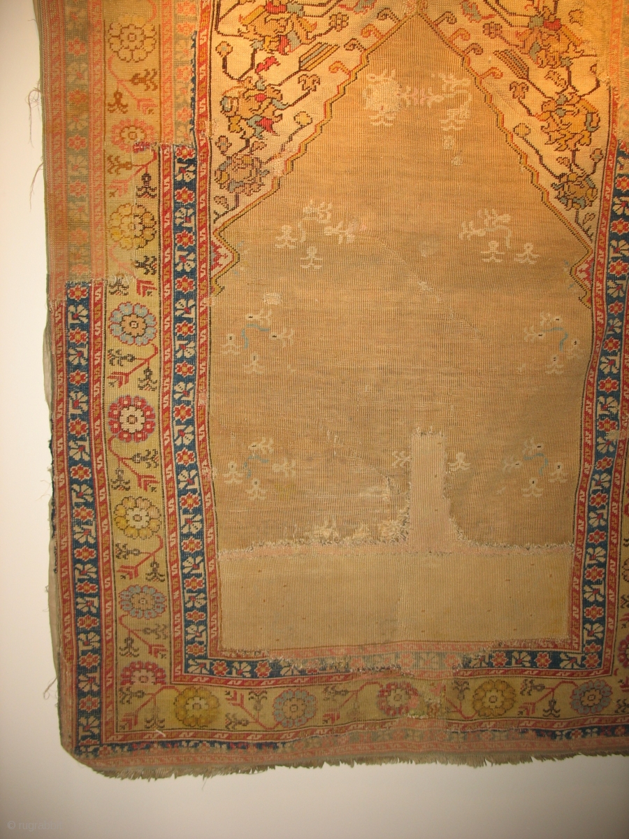 Turkish prayer possibly 18th century. $1100 cheap. Large areas of old restoration.From the May estate ( the May Company ). Friends of the Ballards in the 1920's.