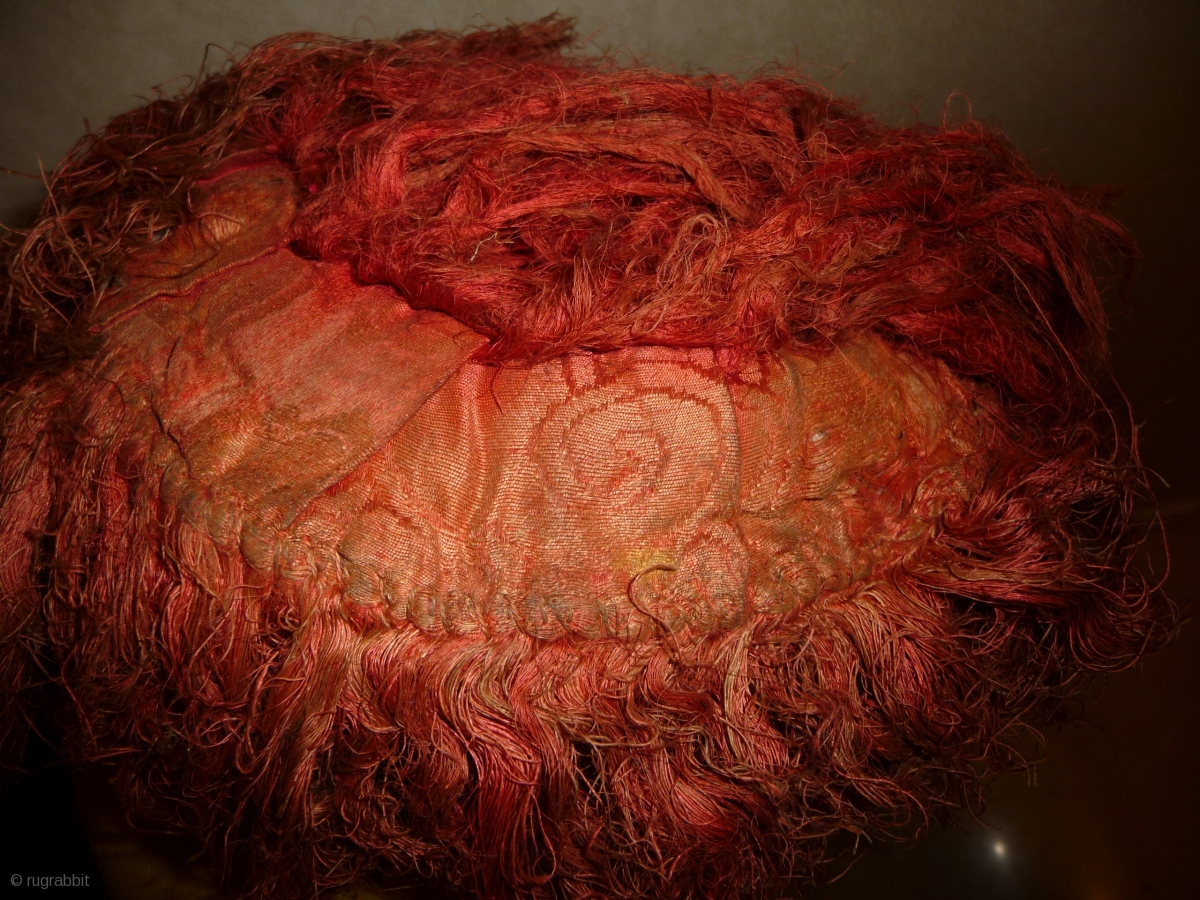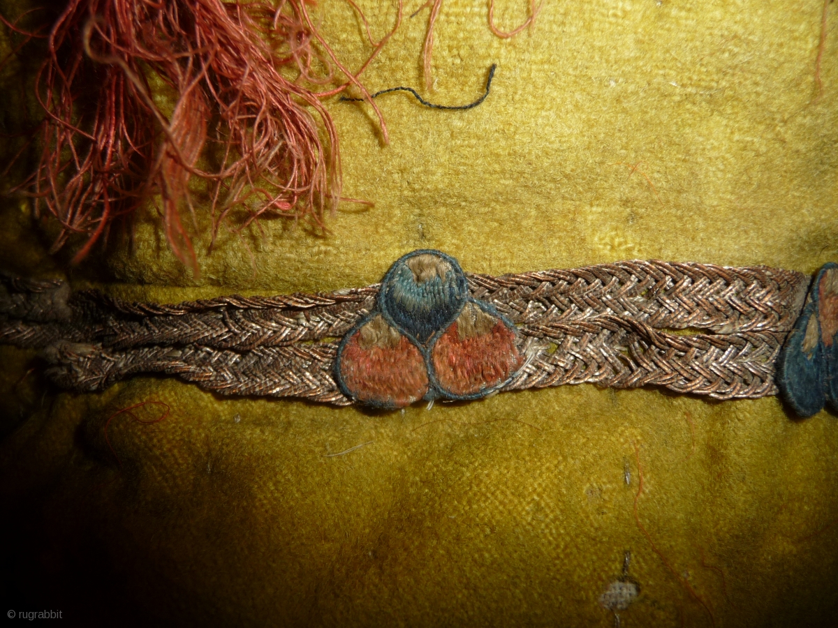 unusual tibetan hat, wool, silk, emboidered jewel.... tibet, 19th century.