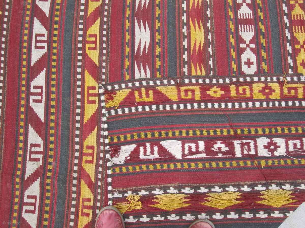 Uzbek-Afhgani Ghadjari rug. Decorative, good size. 5'2"x9'2" (ca 160x280cm). Robust warp-float construction. Mid 20th Century, bold yet pleasing appearance.