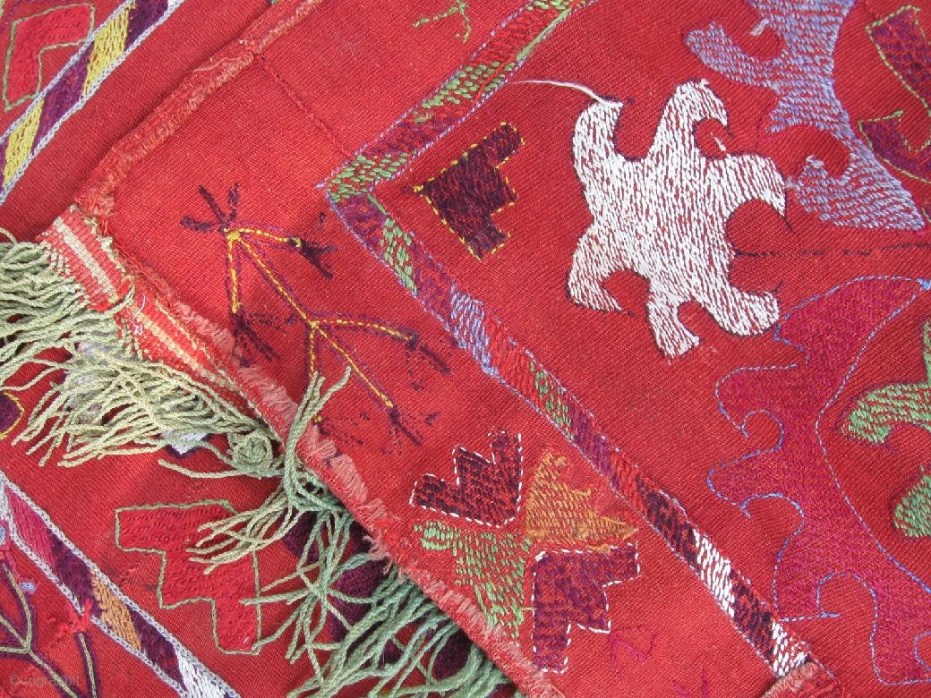 An Uzbek Kungrat or Lakai silk/wool embroidered on wool Ilgitsh hanging, dating between 1880-1900. Large size is 76-75 cm, 30-30 inches, without fringes. In excellent condition. Beautiful design and rich colours, natural dyes.