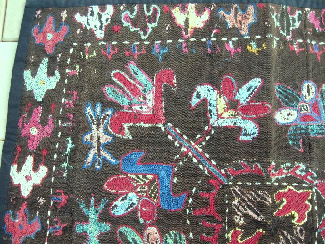An Uzbek Kungrat or Lakai silk/wool embroidered on wool Ilgitsh hanging, dating between 1880-1900. Size is 62-52 cm, 25-21 inches. Beautiful design and rich colours, natural dyes.