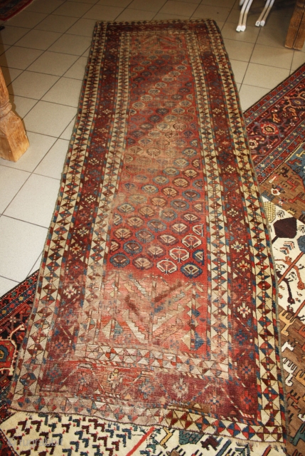 very intresting Shahsavan runner with turkoman design, in poor condition,size 304x102cm