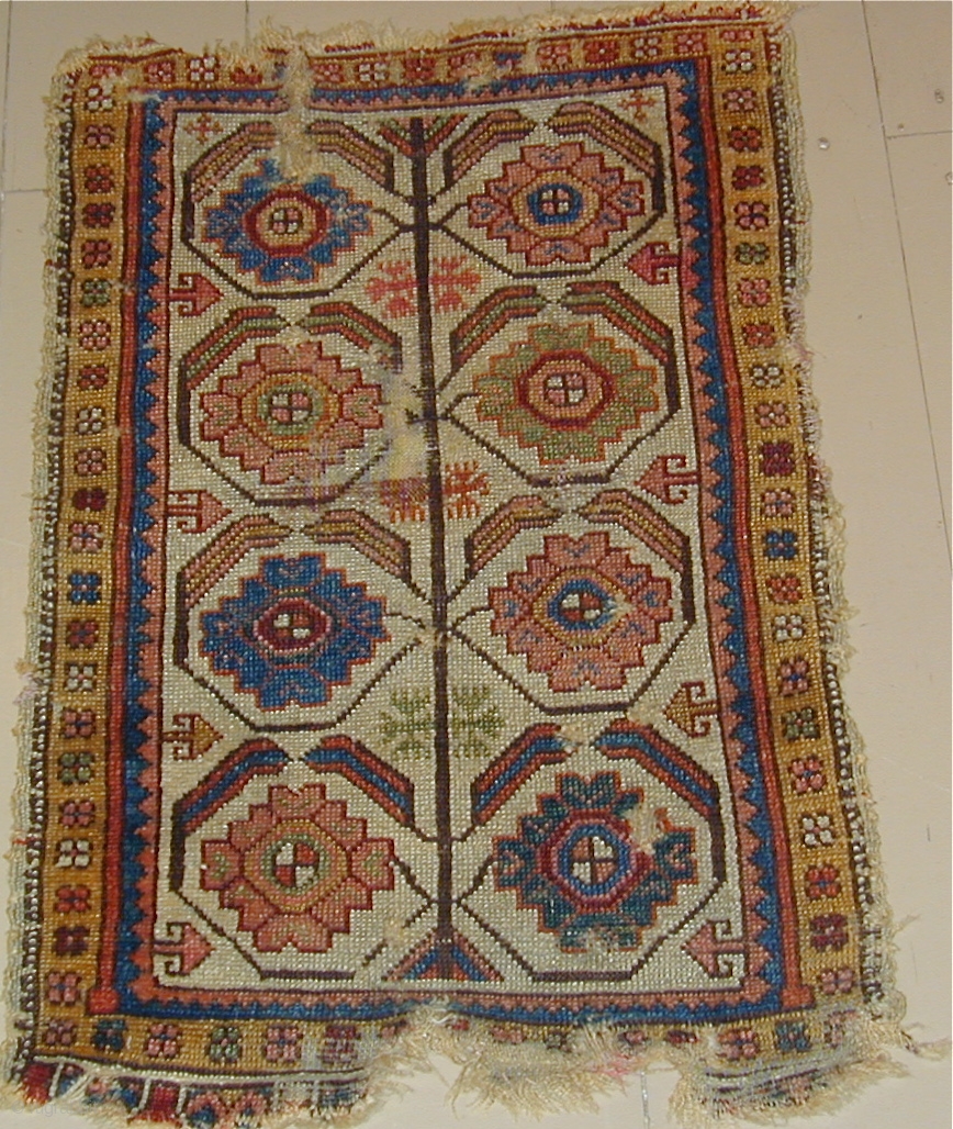 Very rare early Konya Yastik showing a stylized pomegranate tree, vestiges of original side cords,