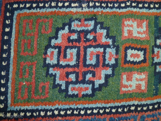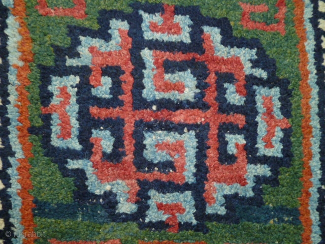 a "Wangdan", 19th century Tibet little rug. Size is 27 x 42 inches. Perfect condition and unusual weave - see shot or reverse.