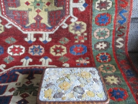 Central Anatolian Gelveri Yastik , all good colors and in good shape. The dark blue looking colors in the saz leafs is ... read more