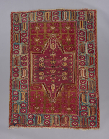 Lot 41, Transylvanian Rug with Cartouche Border, 5 ft. 7 in. x 4 ft. 2 in., Turkey, late 17th century, Condition: good ... read more