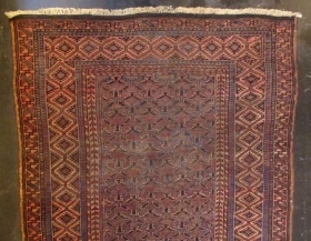 Beautiful Antique Baluch rug, Timuri or Yaqub Khani Tribal Design - 36"x 68". Over all very good pile. Secure ends. Some ... read more