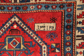 Fine antique Kazak prayer rug, dated 1294 and inscribed. In good pile with no repairs although sidecords have been lost. Lovely colour ... read more