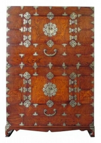 Korean Personal Single Section Cabinet Antique Korean single section cabinet made with elm wood and hardwood burl panels. Hardware is made of brass. ... read more