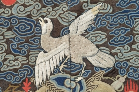 Antique Chinese rank badge First civil rank badge Qing dynasty with crane motif, probably 19. century. Framed and ready to be hanged on the