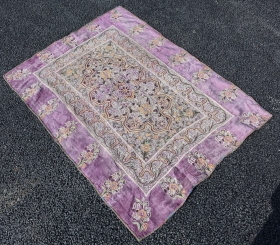 antique persian tabriz rug a unique pictorial rug with a blend of green and lavender color. Hand knotted, vegetable dyes. Great condition. Size - 3'3'' ... read more