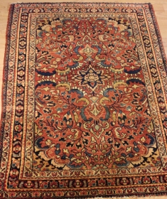 This is an antique Sarouk. It is all wool with a cotton foundation. It dates from c.1900-1920. It is in excellent condition with full pile ... read more