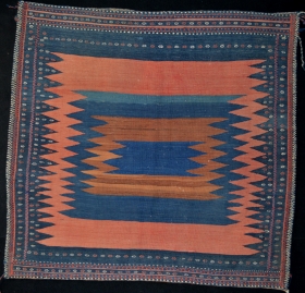 Old super-fine Pushti. 21 x 22 inches. Genuinely old Persian piece of uncertain about origin and i won't hazard a guess. ... read more