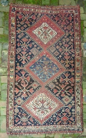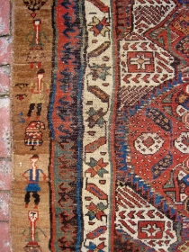 Afshar-- 24 x 32 inches. Some fugitive dyes but still very interesting and finely knotted piece. $20 ups to Lower 48