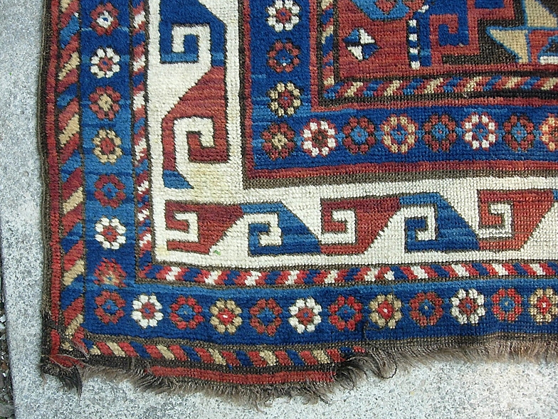 Ancient Kazak. 3 ft 9 x 6 ft 4 in. Another truly archaic looking thing... possibly toward mid 19th cent? earlier?? Above my pay grade. Its rough but it is a doable project because it has pretty good pile in between all the holes. The best thing is that no idiot has ever mucked it up trying to fix it. It is in 100% unmolested condition. $20 to ship anywhere in the us.