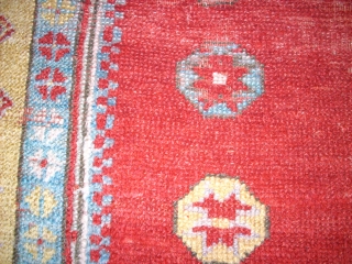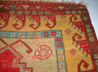 Antique anatolian Konya Obruk prayer rug. Size: 122x98 cm. Special border. Very good colors. Thin pile and small damages.