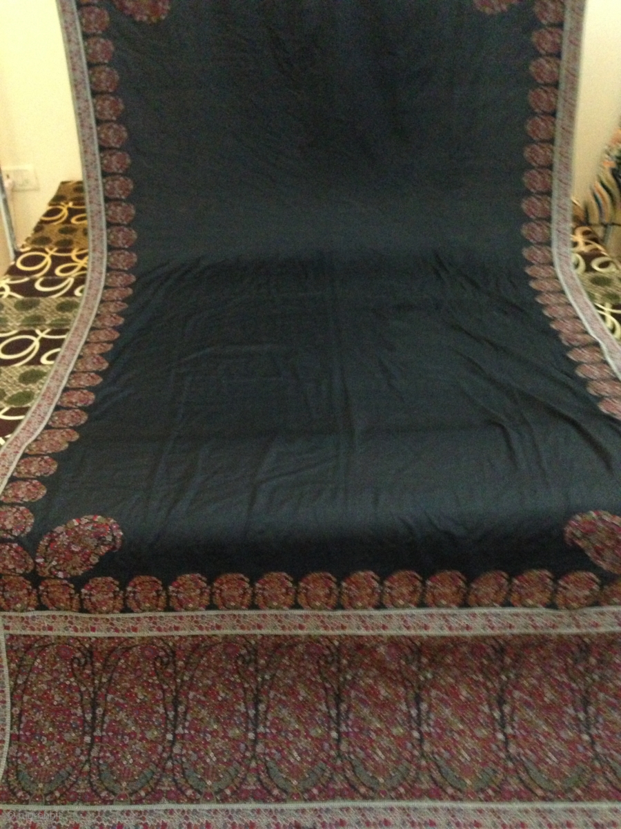 a antique french paisley collection long shawl 1850th century in black color which is Very rare to find. And it's made in same like Indian Kashmir shawl very light. colors are very bright...in perfect condition end to end not even single hole in shawl,