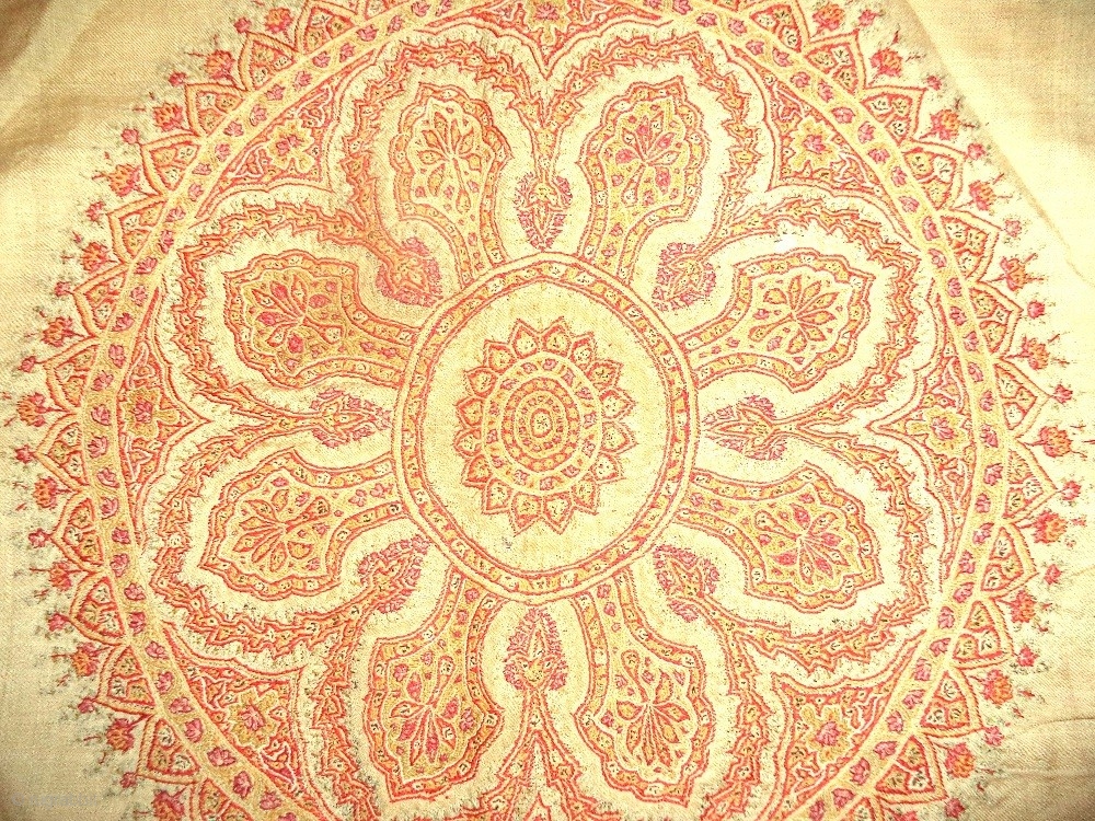 Kashmir shawl (hand embroidered borders), mid-nineteenth century