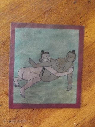 Antique Tibetan erotic tsakli card, 10.5 cm x 9 cm.