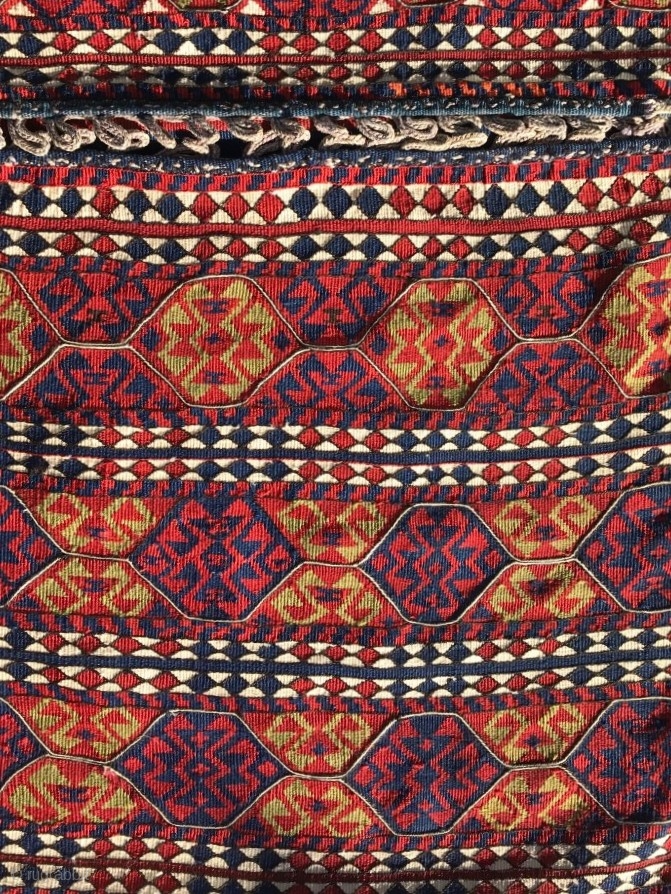 a brocaded Anatolian heybe/saddlebags 4'2" x 2'4", circa 1900. Mint condition. Organic dyes. Probably woven as a part of a girl's dowry. Sourced by Marla Mallett. a great pair of bags. Free usa shipping.