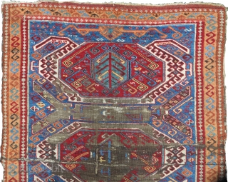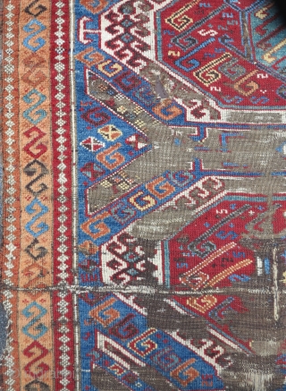 East Anatolian Kurdish long rug with a Caucasian Lenkoran design. Vibrant color, exceptional wool, worn. 3 different main border types.