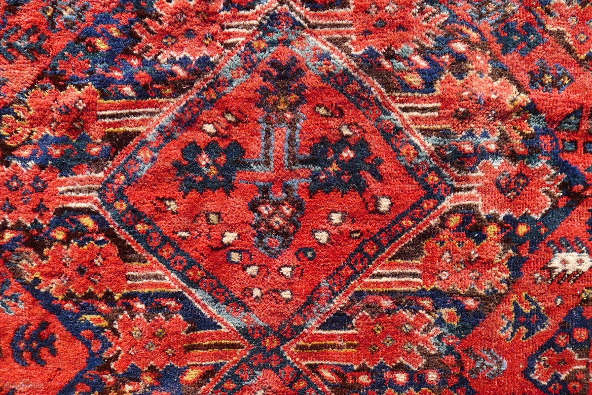 Ersari Beshir Main Carpet,10.8 x 4.9ft. (330 x 150 cm) circa 1880 Classic design with six linked medallions on a mixed blue and dark brown ground. Main border with vertical star motifs and extending rays. Im good piled condition.