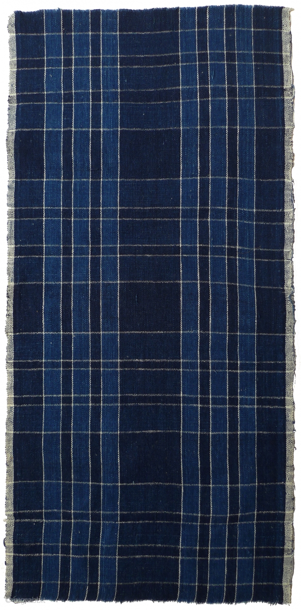 Group of Vintage Japanese Indigo Cotton Plaids. Bought in Japan in the 1970s - were older then. Basically good condition - a few minor holes. Some are handwoven. All selvedges intact. These were used for futon covers. #26: 22.75" x 13"; #27: 24.5" x 13.25"; #28: 39" x 13.25"; #29: 28" x 13"; #30: 50" x 13.25"(3 patches on back).