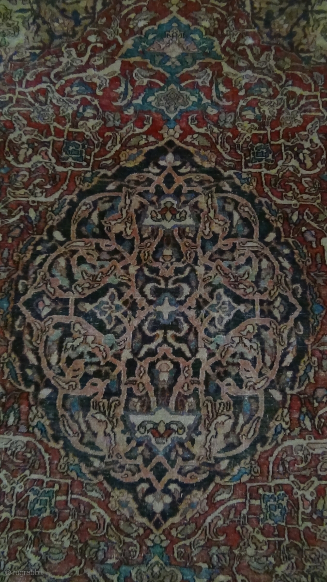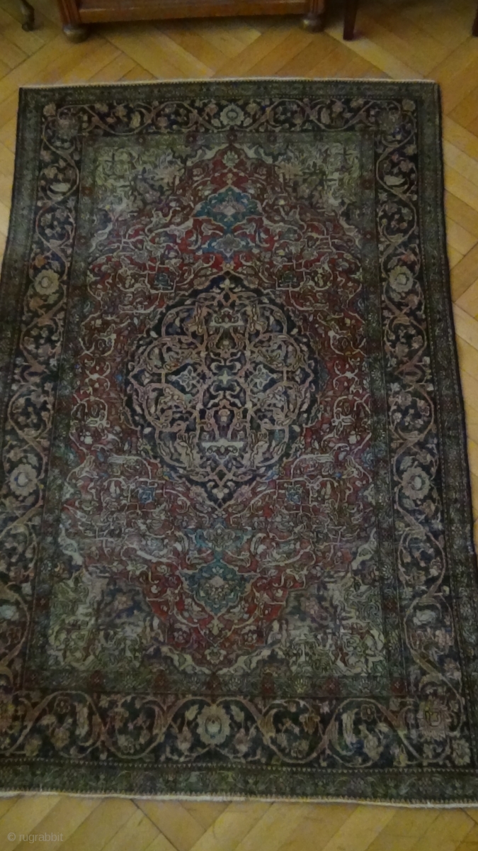 Isfahan ( Isphahan) 125x200 cm. Even low pile allover. No grey-zones or damage, sides secured. a rare and very old specimen ( probably early 19th. c. ). Although typical Isfahan the intricate design radiates mystery and depth.