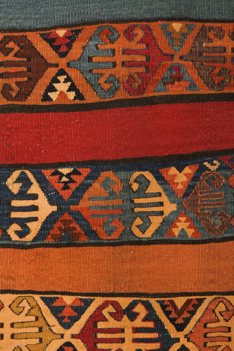 I've never seen on an Anatolian Kilims using this symbol as a main design, only as a bordure-element or an additional part in the main design. Real collector's piece, ready to show.