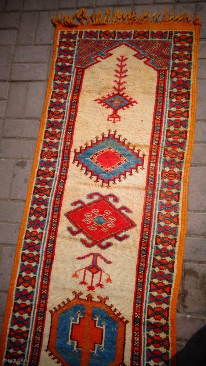 Morrocan Rug runner with nice colors and deaign,soft shiny wool,good condition.Size9*2'5".E.mail for more info and pics.