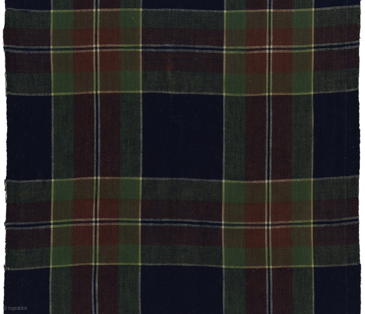 Old Japanese Cotton Plaids. These pieces were used as part of futon covers. i bought them in Japan in the 1970s and they were old then. The colors are rich and harmonious. All selvedges are intact. Good condition except for some small holes in #2. The little white flecks are remnants of cotton batting. #1: 33" x 13.35" sold; #2: 44.5" x 13" sold; #3: 36" x 13"