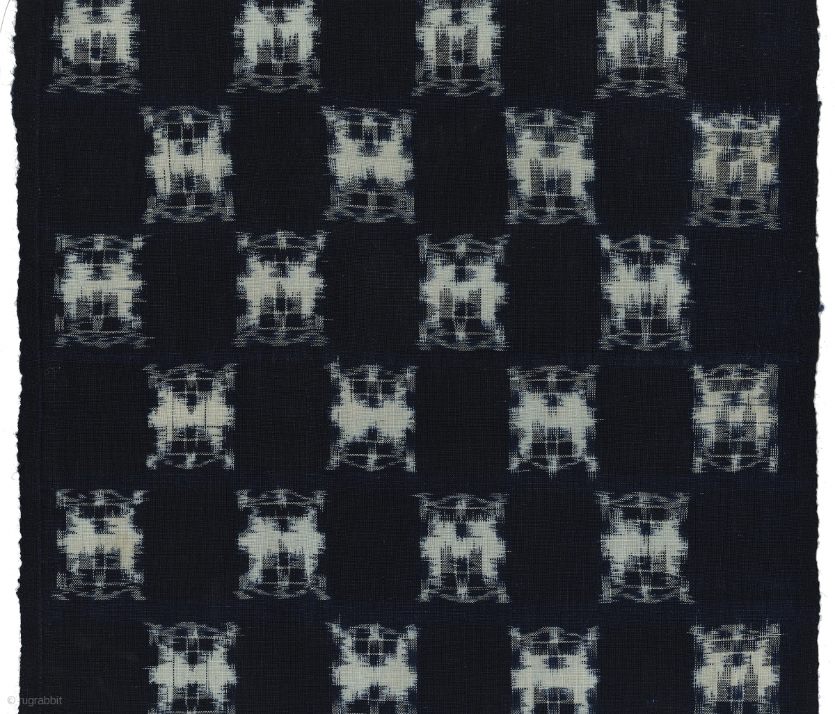 Three Japanese Indigo Kasuri. Sizes from left to right: 36" x 13"; 46" x 13.5" (all colors are even) ; 43" x 13". Excellent condition; all selvedges intact. Found another box of Japanese textiles in my storage room. i bought these in Japan in the 1970s and they were older than that.