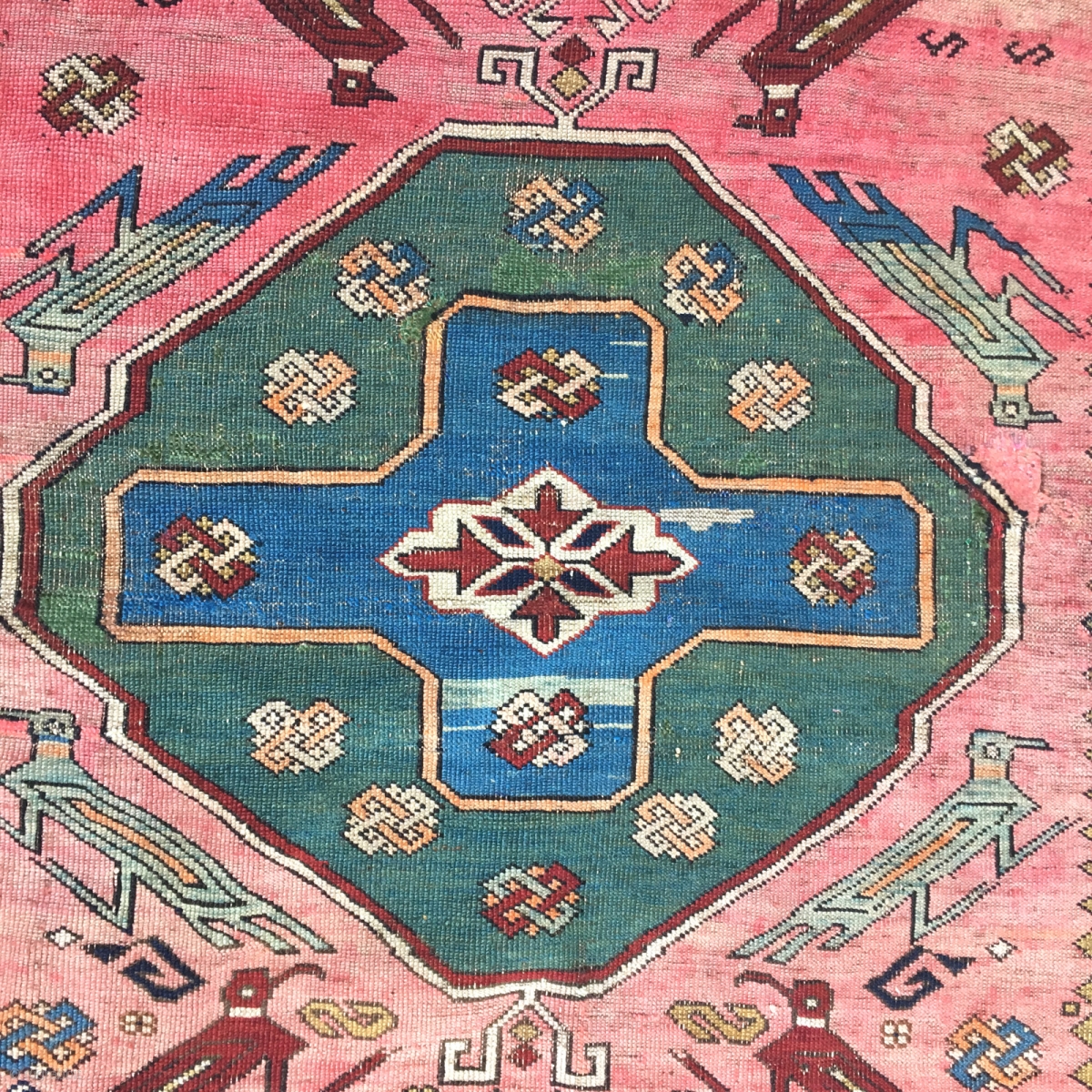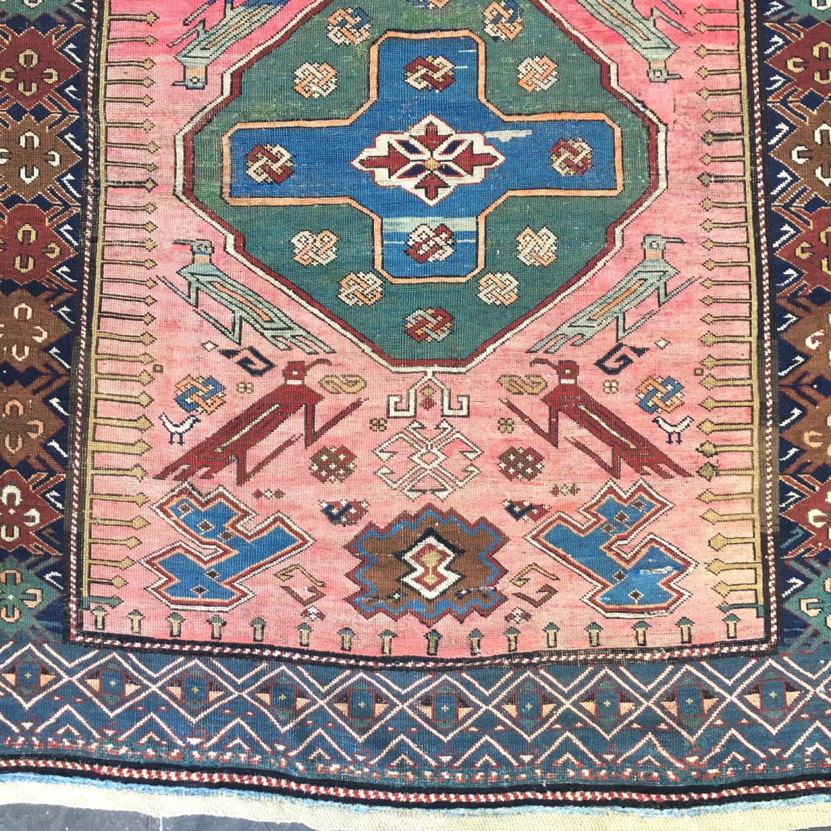Late 19th c Shusha Garga or Kuba Bird beautiful colors and eagle symbol and Cross,