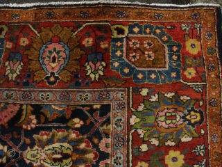 a very boldly executed Sultanabad/Arak area "vase design" carpet with a very legible inscription cartouche and dated 1305 Hijri = 1878 a.d. Approximately 9'6" x 10" with mostly medium to low pile with no foundation visible. Older repairs.