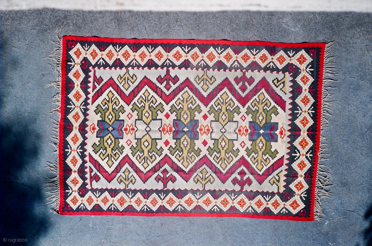 Antique Pirot sarkoy kilim named Sluzavnik.