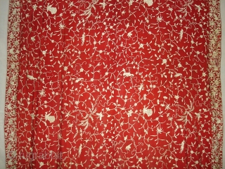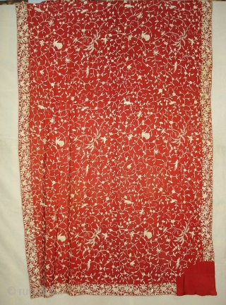 Parsee Gara Sari From Surat Gujarat India.This kind of Sari's were embroidered by Chinese artisans in the town of Surat in Gujarat for the Parsee women of that region.The Parsee's are a Zoroastrian community in the Indian subcontinent.They are non Muslim Persians that were driven away from Iran when it became Islamic.Its size is 110cmX440cm.about the Condition there is some holes in side borders,but very miners(DSC05319 New).