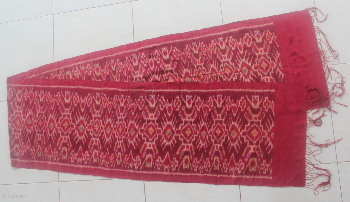 19th Century textile, endek ceremonial kemben from Bali, Indonesia. Silk. Size: 281cm x 42cm. Condition: there has some holes has been repaired.