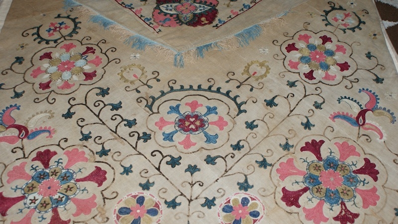 Beautiful 1880th Uzbek suzani bohca. Specatcular thin chain stitches and excellent natural dyes colours. It is very rare piece, i have not seen many of them, it is very rarely find these days. It is original piece. Very good condition within this age, the size is 100cm by 100cm.